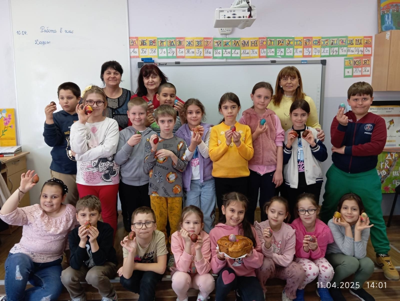 Силистра, 12 април 2025 г. – С много усмивки и вдъхновение премина днешното гостуване на библиотекарите от Детски отдел на Регионална библиотека "Партений Павлович" в ОУ "Св. св. Кирил и Методий" – Силистра. В навечерието на Великденските празници те организираха пъстра и вълнуваща арт работилница "Шарени яйца", посветена на традициите и магията на празника.