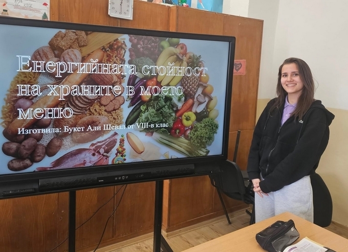 Втората част на заниманието беше посветена на връзката между храната и енергията на човешкия организъм. Учениците проучиха как калориите от хранителните продукти се превръщат в механична енергия за мускулите и изследваха съдържанието на килокалории в различни храни. Практическите задачи стимулираха любопитството и насърчиха участниците да търсят отговори, съчетавайки знанията по физика с ежедневните навици за здравословно хранене.