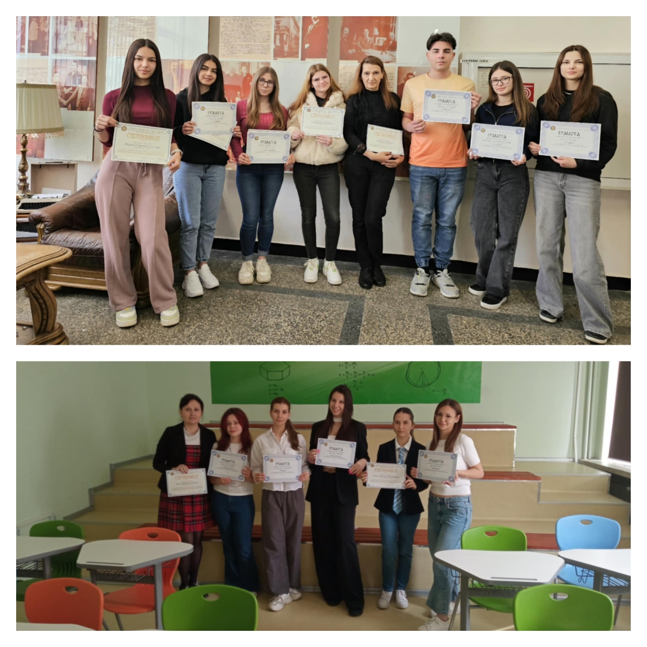 Учителите Марияна Винарова и Диана Ганчева, които подготвяха участниците, също бяха отличени със сертификати. Всички наградени ученици получават правото на прием в редовна форма на обучение по държавна поръчка в избрана специалност в Стопанска академия – Свищов.