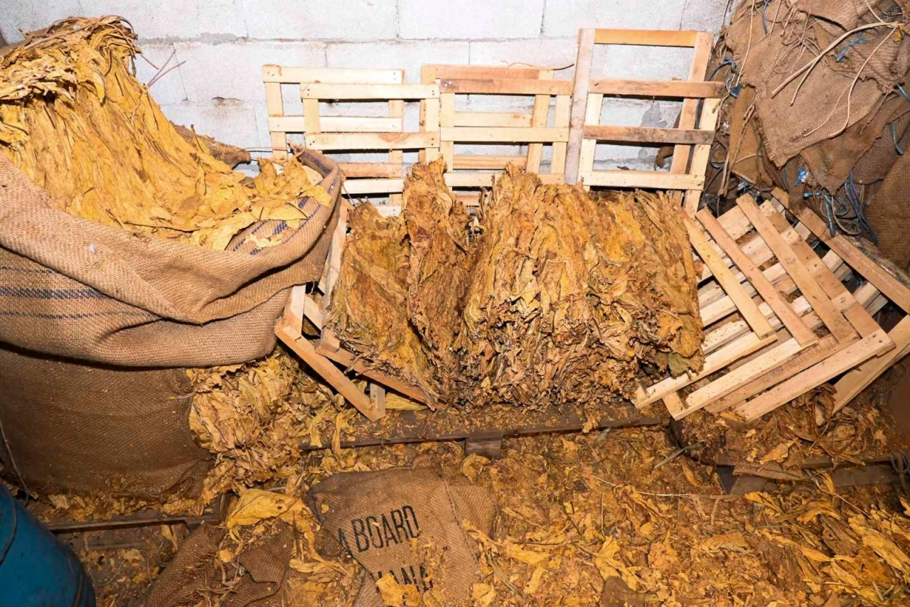 Разследването продължава в частен имот в село Стожер, където в селскостопанска постройка са открити значителни количества суровина и оборудване за нелегална обработка на тютюн. Намерени са бали с нарязан тютюн с общо тегло над 1 тон, машина за рязане, казан за запарване с газова горелка, както и аромати за овкусяване.