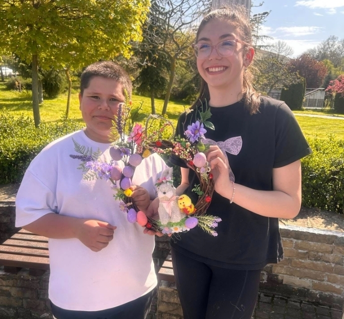 В духа на празника младите творци създадоха великденски венци, които ще бъдат подарени на потребители на социални услуги и пенсионерски клубове в общината. С вдъхновение, добри емоции и усмивки, участниците вложиха лично отношение и старание във всяка изработка, вярвайки, че дори един малък жест може да стопли сърце и да внесе празнична светлина в нечий ден.