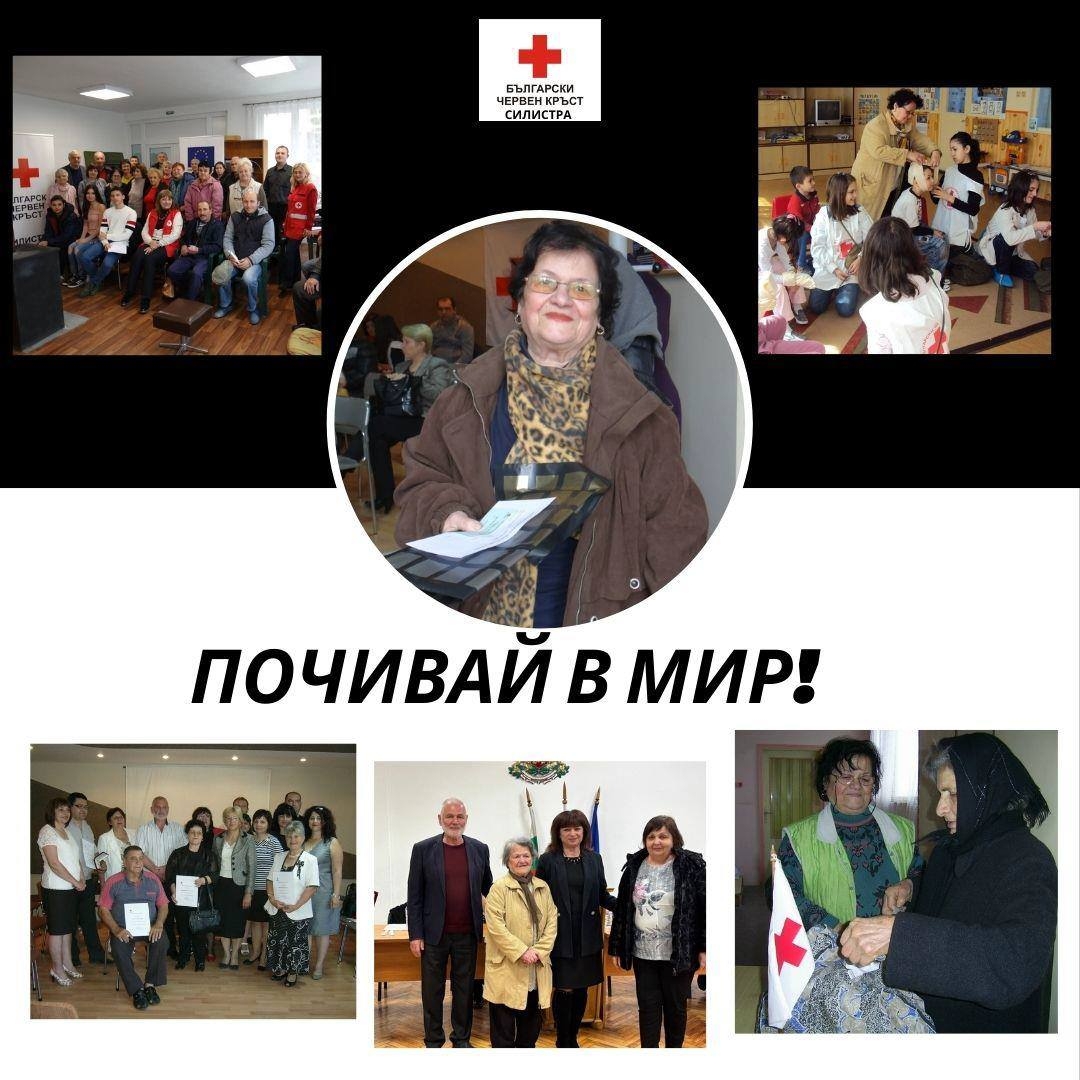 "С неуморната си работа и голямото си сърце тя докосна живота на мнозина. С благодарност за всяка нейна стъпка в името на доброто, покланяме се пред паметта ѝ", се казва в съобщение от Областния съвет на БЧК – Силистра, подписано от председателя Маргарита Касабова.