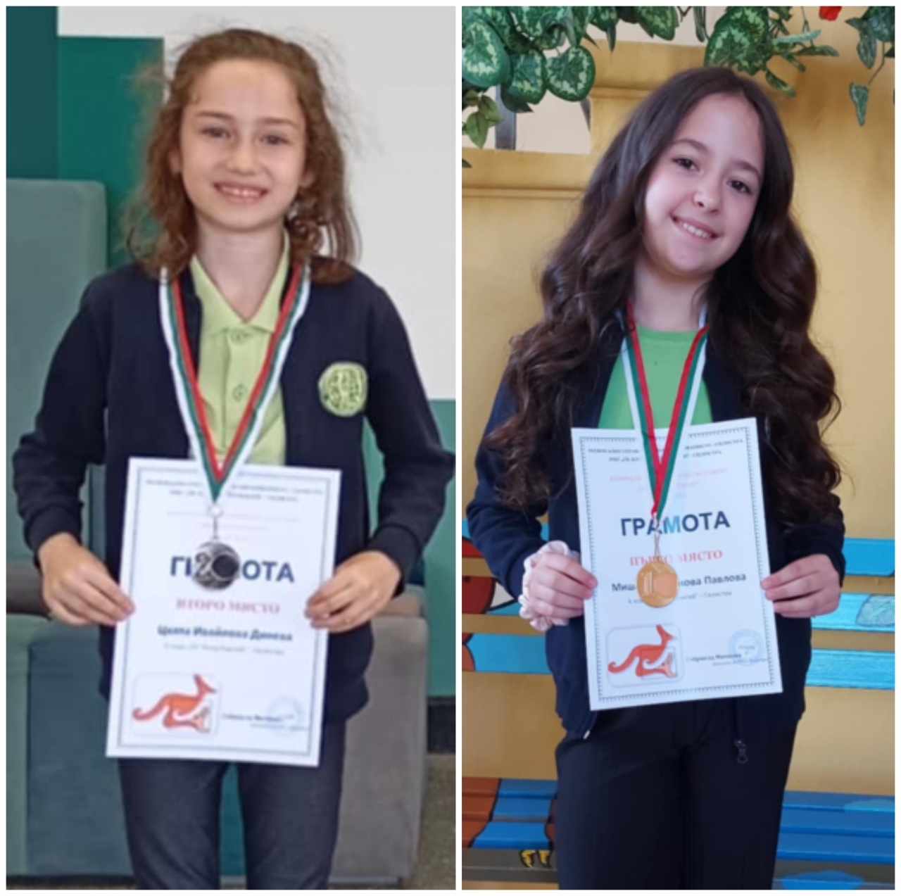 Мишел Павлова от IV б клас завоюва златен медал, а нейният съученик Цвята Динева заслужи сребърен медал, демонстрирайки отлични математически знания и логическо мислене. Техните постижения са повод за гордост не само за училището, но и за родителите и преподавателите, които ги подкрепят в развитието им.