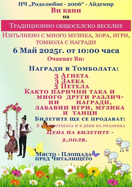 На 6 май 2025 г. (Гергьовден) от 10:00 часа, НЧ "Родолюбие - 2006" в село Айдемир кани всички жители и гости на традиционно общоселско веселие на площада пред читалището. Очаква се празникът да бъде изпълнен с много музика, хора, забавни игри, танци и, разбира се, голяма томбола с атрактивни награди.