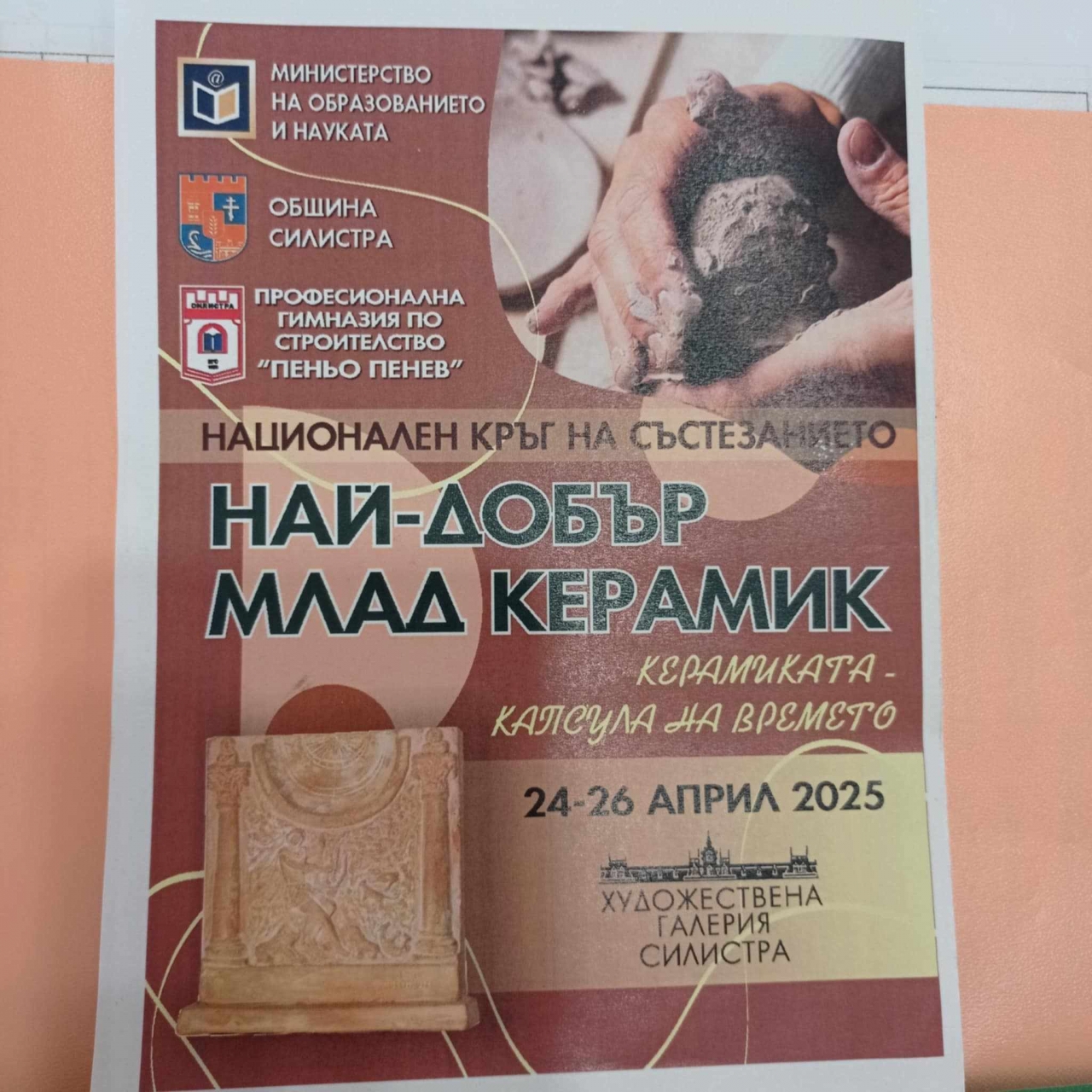 Силистра ще бъде домакин на национално състезание "Най-добър млад керамик" от утре до 26 април. Това съобщиха за БТА от Професионалната гимназия по строителство "Пеньо Пенев" в крайдунавския град.