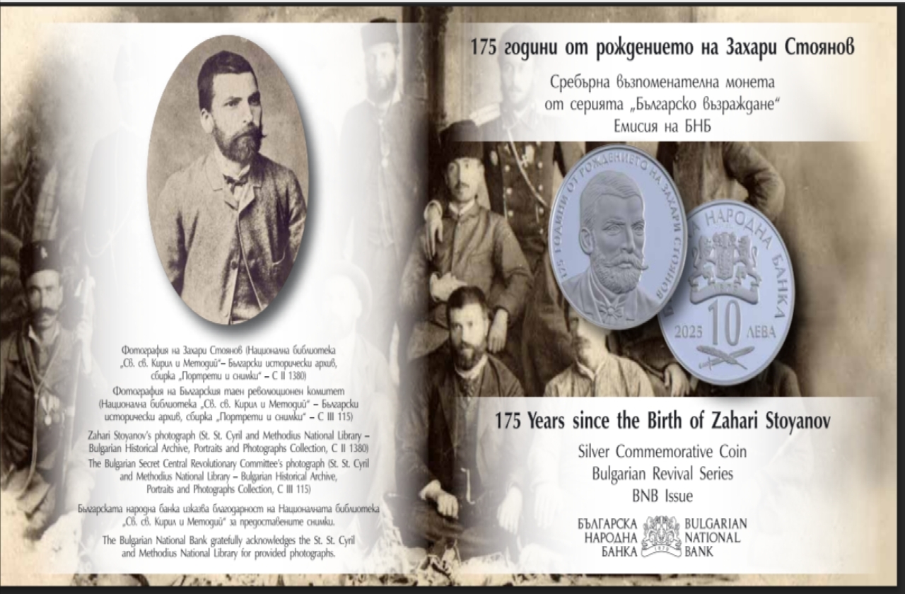 От 28 април 2025 г. Българската народна банка ще въведе в обращение нова сребърна възпоменателна монета, посветена на 175-ата годишнина от рождението на видния възрожденец Захари Стоянов. Тя е част от серията "Българско възраждане" и ще се предлага на цена от 162 лева.