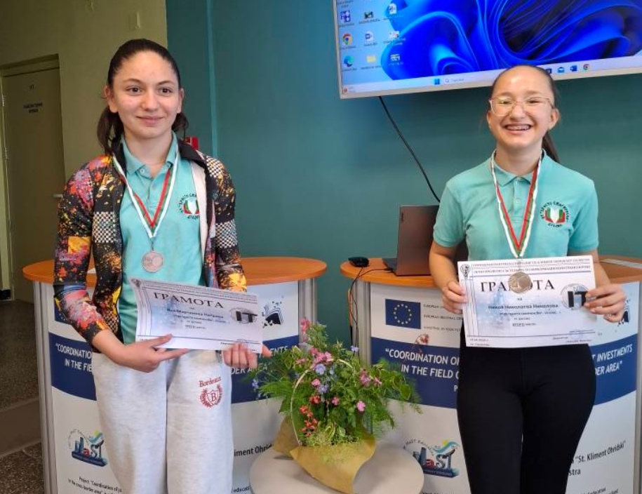 С висок резултат и отлична защита на своите проекти, Никол Николова спечели второ място, а Яна Петрова заслужи третото място в силната конкуренция на участници от различни училища в региона.