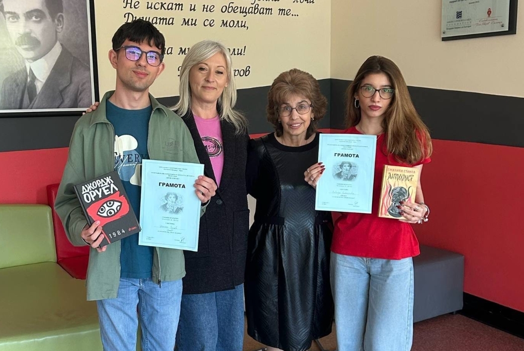 След като достигнаха финалния етап на Националната олимпиада по български език и литература, талантливите ученици доказаха за пореден път нивото си, като се изкачиха на почетната стълбица в престижната XXXIII Национална конференция по литература, история и философия "Битие и време", провела се на 25 април 2025 г. във Варна. Даниел Русев се класира на първо място, а Елвира Симеонова завоюва трето място – признания, които отекват като аплодисменти за упорития им труд и високата им езикова и философска култура.