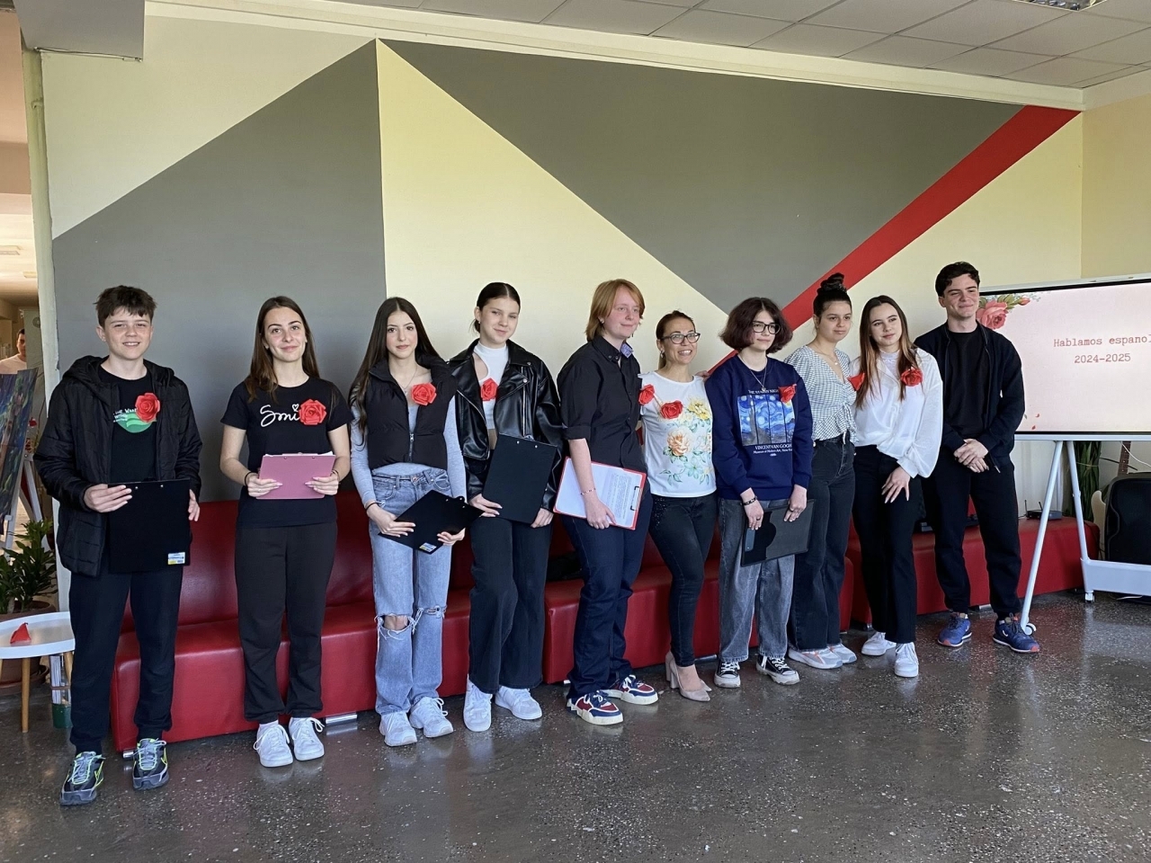 Празничната инициатива бе вдъхновена от традицията в Каталуния, където на този ден хората си разменят книги и рози. Водещите Никол Иванова (11.а клас), Габриела Атанасова (9.б клас) и Мелани Георгиева (8.а клас) представиха на испански и български историята на празника, а Ванеса Русева и Мелани Георгиева изработиха тематичен постер с цитати, изображения и символи от испанската традиция.