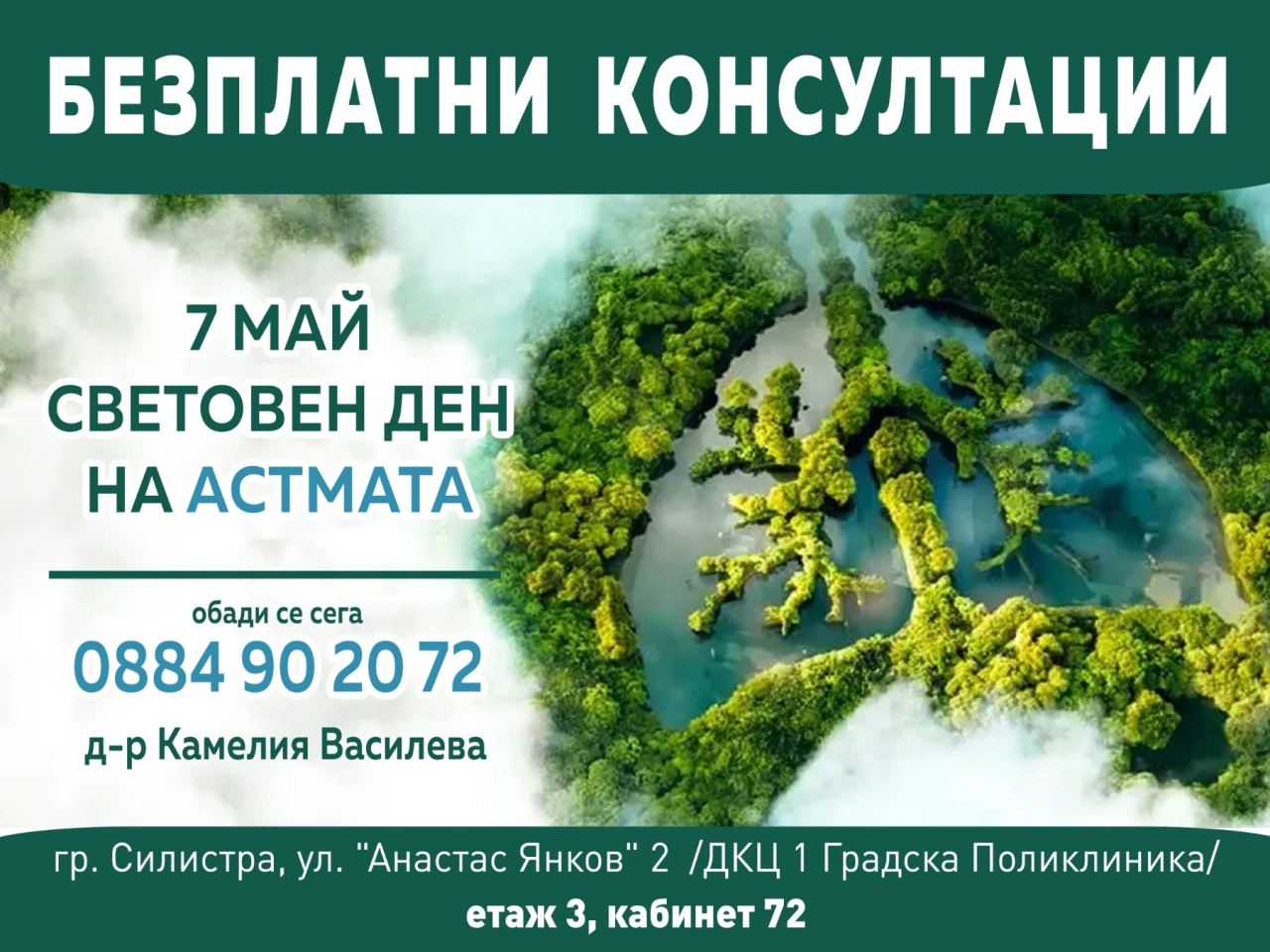 На 7 май, когато светът отбелязва Световния ден за борба с астмата, в град Силистра ще се проведат безплатни медицински консултации, насочени към ранно откриване и контрол на заболяването. Инициативата се организира от д-р Камелия Василева, специалист по вътрешни болести и белодробни заболявания.