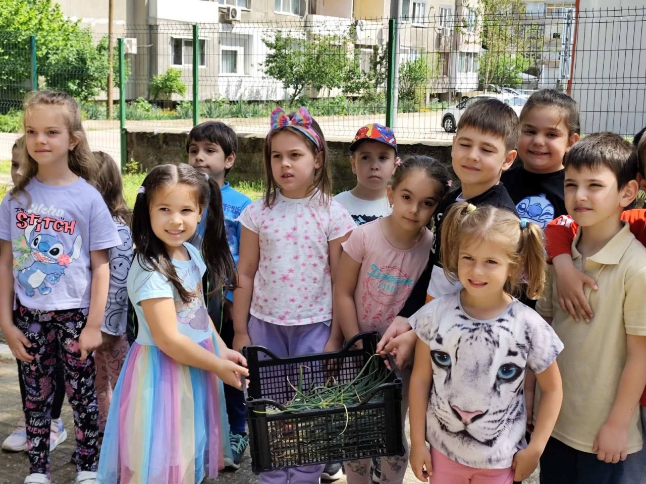 С много усмивки и ентусиазъм децата от Детска градина "Иглика" се включиха в пролетни дейности в своята екологична градина. В рамките на Националната програма "Хубаво е в детската градина", малките възпитаници на учебното заведение събраха първата реколта от лук и чесън, отгледана с много старание и грижа през изминалите седмици.