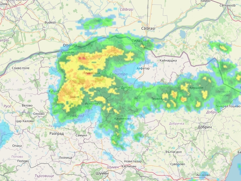 По данни от радарната система на Изпълнителна агенция "Борба с градушките" – обилни валежи са регистрирани в районите на Ситово, Главиница, Алфатар и Силистра