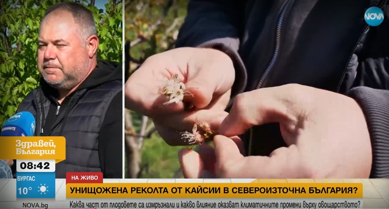 "Процентът на измръзване при кайсията тази година е 100%. Забелязва се тенденция към т.нар. "празни години", когато дърветата не дават плод – явление, което става все по-често заради топлите зими и последващите студове", заяви пред Нова телевизия Синан Вейсал, член на УС на Браншова камара "Плодове и зеленчуци".