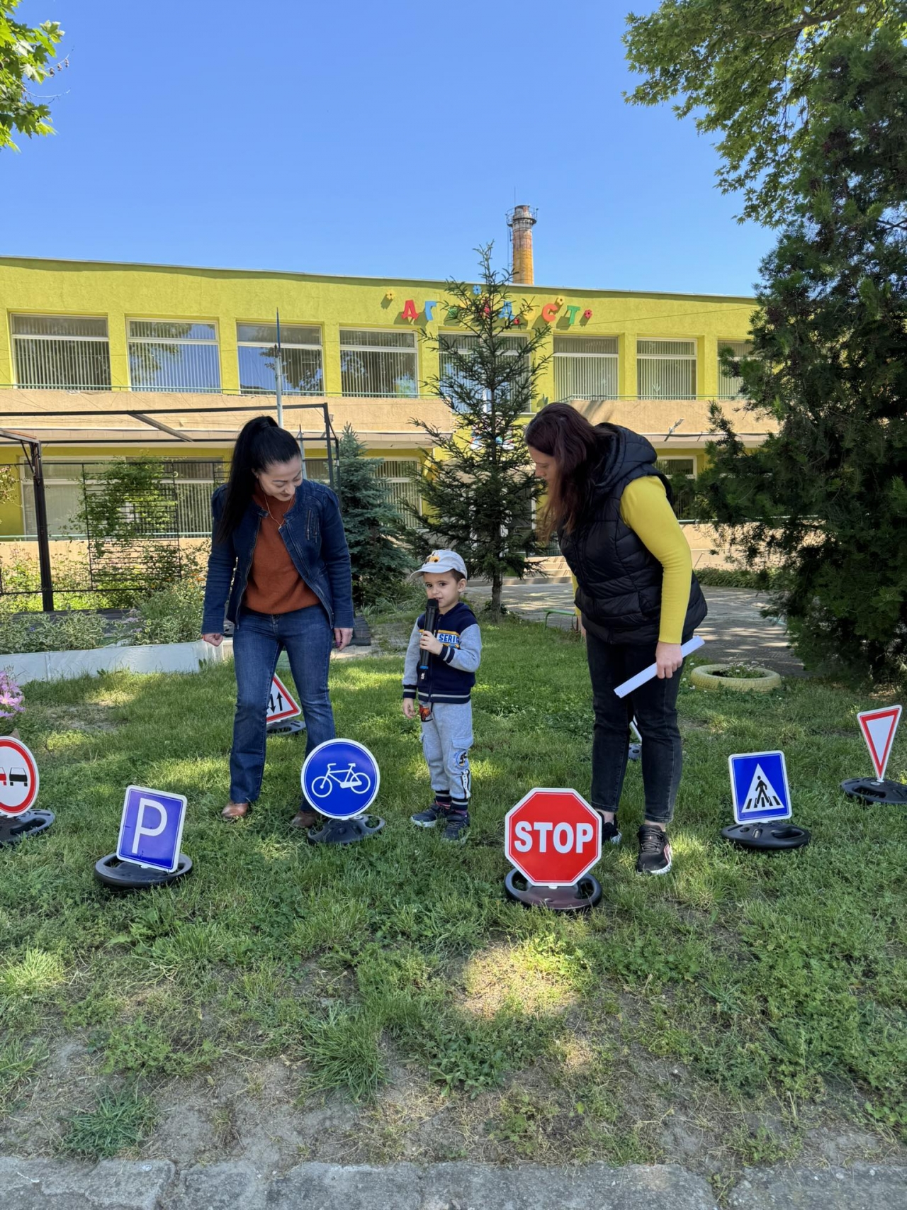 Малките възпитаници на градината влязоха в ролята на пешеходци, пяха песни, рецитираха стихчета и участваха в тематични игри, които имаха за цел да затвърдят знанията им за правилата на движение и значението на пътната сигнализация.