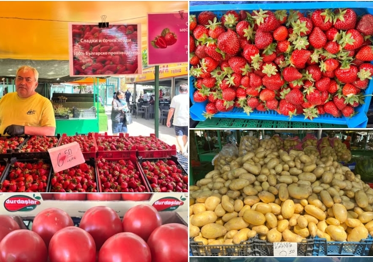 На пазара може да откриете разнообразие от пресни сезонни плодове и зеленчуци, включително сладки и сочни ягоди от българско производство, както и родни картофи, домати и други култури, отгледани с труд и грижа.