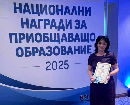 Национално признание за ДГ "Роза" – Силистра: Даниела Кралева с награда за приобщаващо образование
