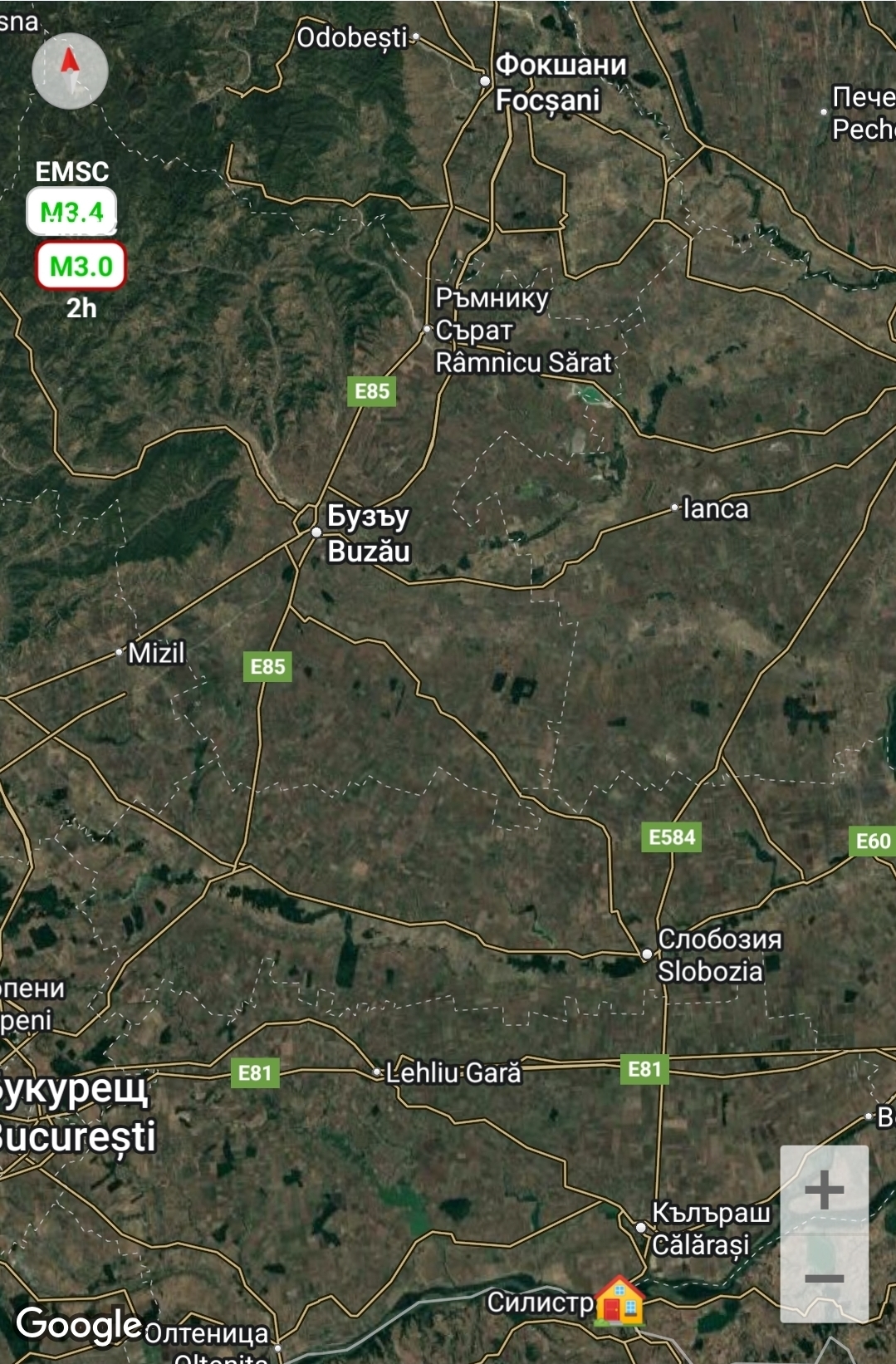 Трус от 3.4 по Рихтер на 175 км от Силистра, втори от 3.0 на 168 км разтърсиха района около Бузъу