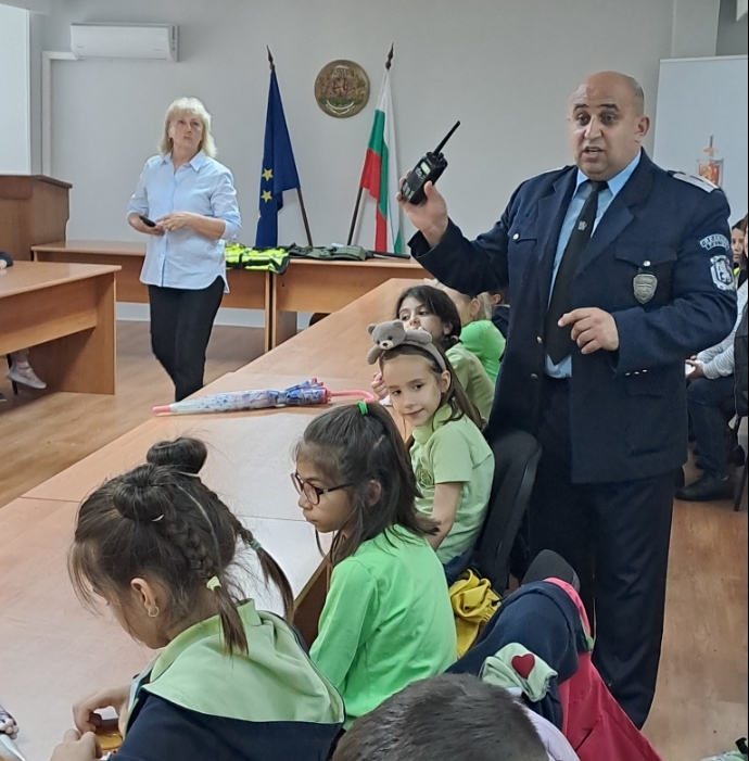 Децата бяха посрещнати от инспектор Ирена Мърова и инспектор Алтан Мехмед, които по достъпен и увлекателен начин разказаха за основните правила за безопасно поведение през ваканционния период – при движение по пътищата, при контакт с непознати, както и при игри на открито.