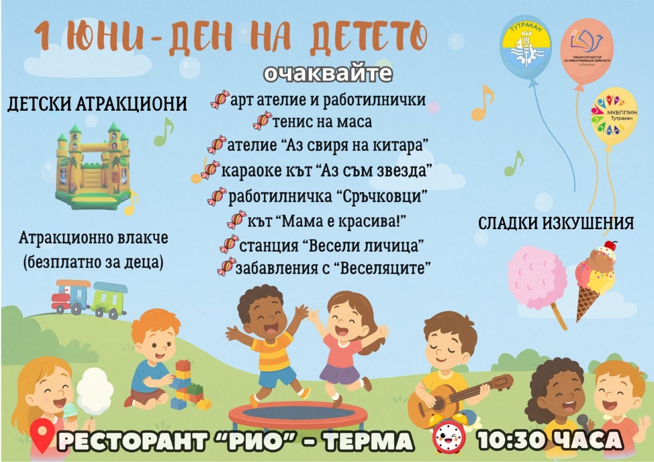 Община Тутракан, Общинският център за извънучилищни дейности и Местната комисия за борба с противообществените прояви организират празнично събитие за всички деца и техните семейства по случай Международния ден на детето – 1 юни.