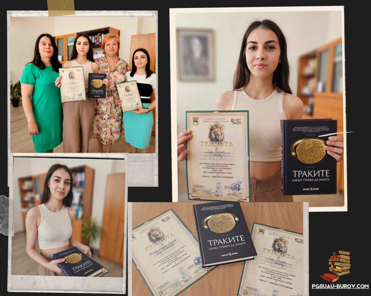 Ръководството и педагогическият екип на ПГСУАУ "Атанас Буров" поздравяват Еля за постигнатия успех и ѝ пожелават още вдъхновяващи проекти и нови хоризонти в личното и академично развитие!