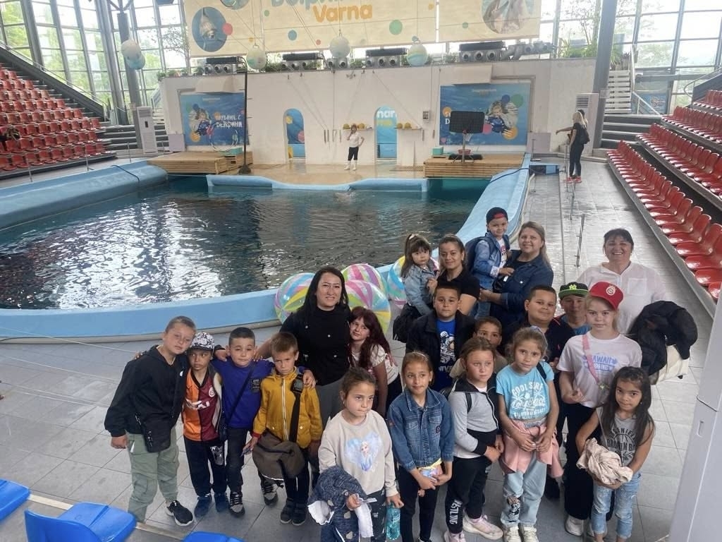 Първата спирка от екскурзията беше Делфинариумът във Варна, където децата се запознаха с обитателите на басейна – Йоана, Кимбо, Доли, Флипър и Бимбо. Делфините демонстрираха своите невероятни акробатични умения и предизвикаха бурни аплодисменти от най-малките гости, които останаха очаровани от близостта с тези интелигентни морски животни.