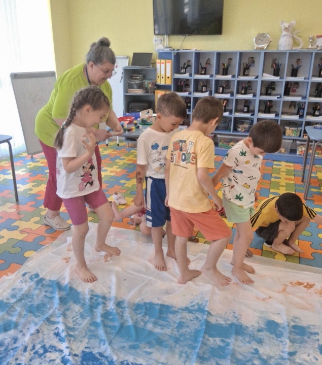 С помощта на специалистите от РЦПППО – Силистра и подкрепата на своите учители, децата се включиха с въодушевление в нетрадиционното рисуване с крачета и длани – преживяване, което съчета изкуството с терапията и остави трайни цветни отпечатъци – както върху платното, така и в детските спомени.