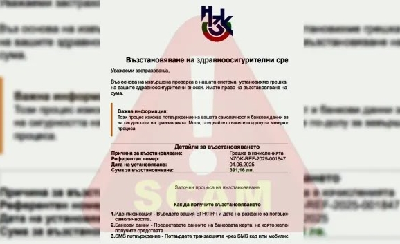 Съобщенията са оформени така, че имитират официална комуникация от НЗОК, като съдържат логото и визуални елементи, типични за институцията – подход, често използван при подобни злонамерени кампании.