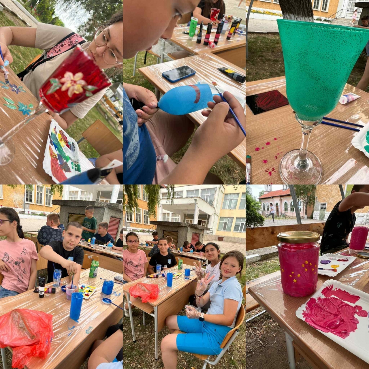 🎨 Изложба-базар на ръчно изработени изделия – бутилки, буркани, чаши и сувенири, сътворени по време на специални работилници. Децата показват въображение и сръчност в създаването на уникални творби.