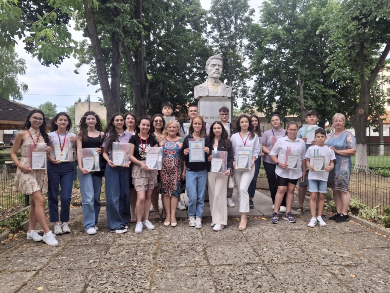 Дулово, 20 юни 2025 г. – В СУ "Васил Левски" – гр. Дулово днес се състоя тържествена церемония по награждаване на ученици от 5. до 12. клас, участвали в Националния кръг на състезанието "Стъпала на знанието" по български език и литература, организирано от Сдружение "Десет книги".