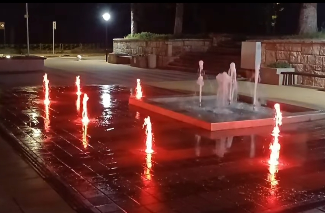 Посетителите на площада могат да се насладят на впечатляващи водни струи, които танцуват в хармония с популярни мелодии и светлинни ефекти.