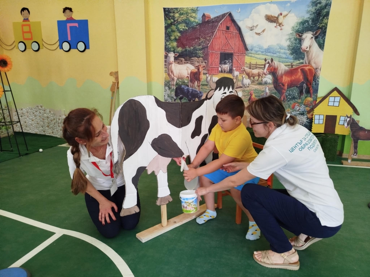 • Ролева игра "Добре дошли във фермата" – малките участници влязоха в ролята на "фермери", запознавайки се с животните и продуктите от тях.