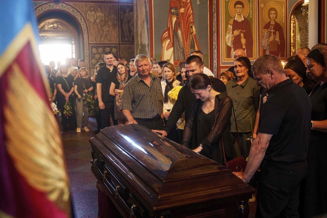 Сред събралите се под златните куполи на катедралата "Свети Михаил" в украинската столица, генерал Олег Захартчук отдаде почит на пилота, описвайки го като "уникален човек".