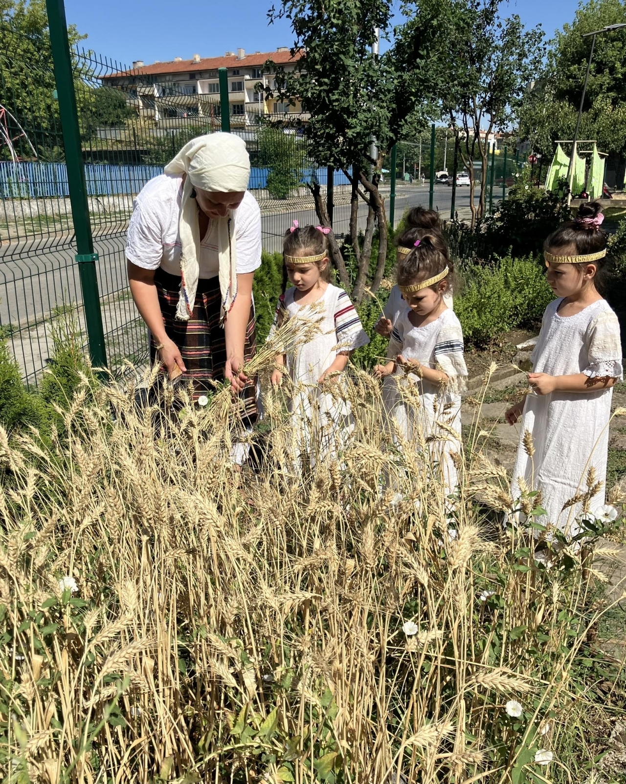 Децата с вълнение събираха класове, ронеха зърна в дланите си и изслушаха разкази за стопаните на Добруджа – земята, която храни България. Атмосферата бе изпълнена с автентичност, благодарение на подбраните елементи от бита и традиционните народни облекла, с които бе облечен и екипът на градината.