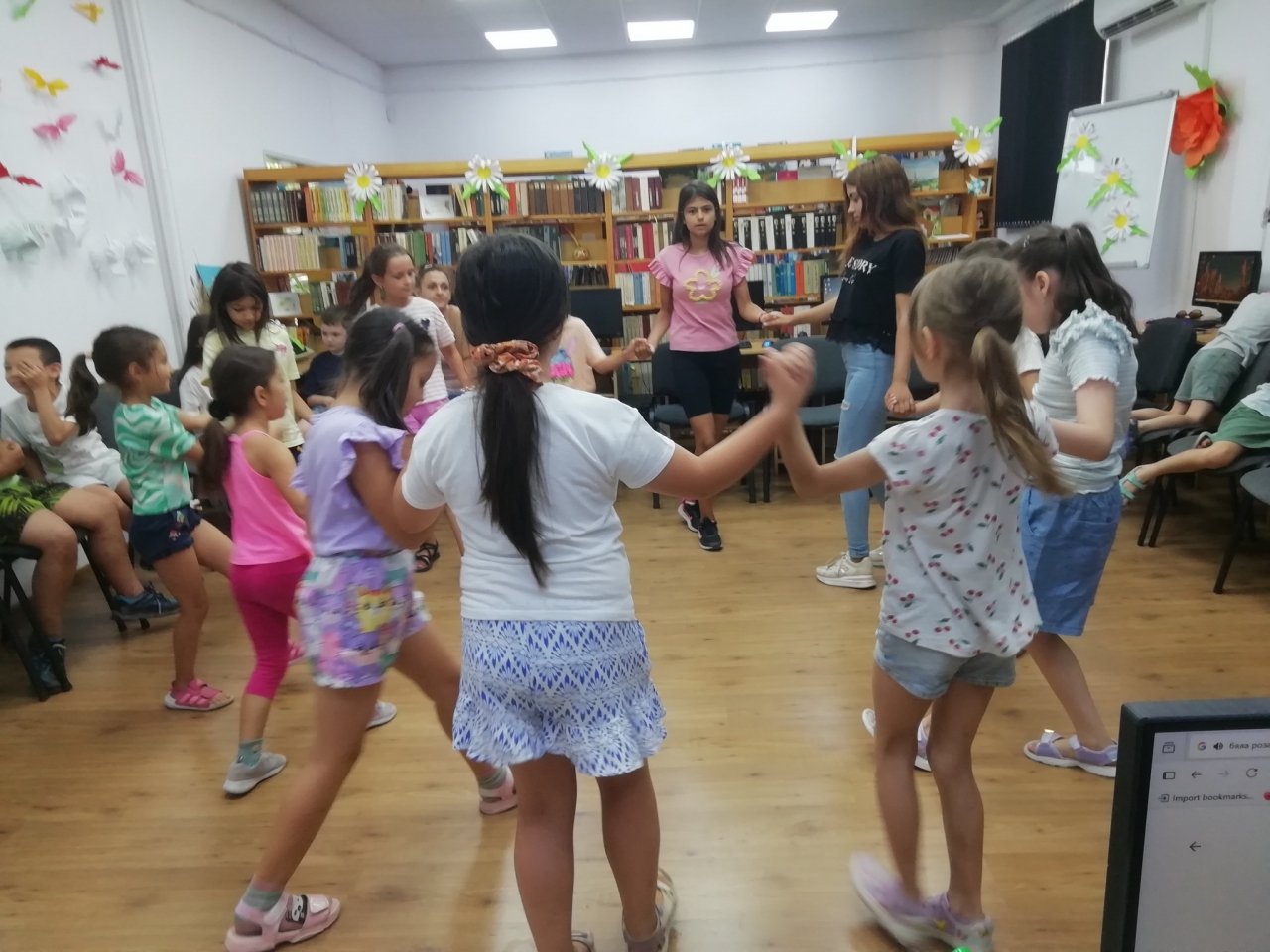 След това, програмата се пренесе в миналото с играта "Гори, гори кърпа" – забавление от времето на бабите, което първоначално предизвика срамежливост, но впоследствие увлече всички участници. Кулминацията настъпи с танци и занимания на интерактивния под – един от любимите образователни инструменти на децата.