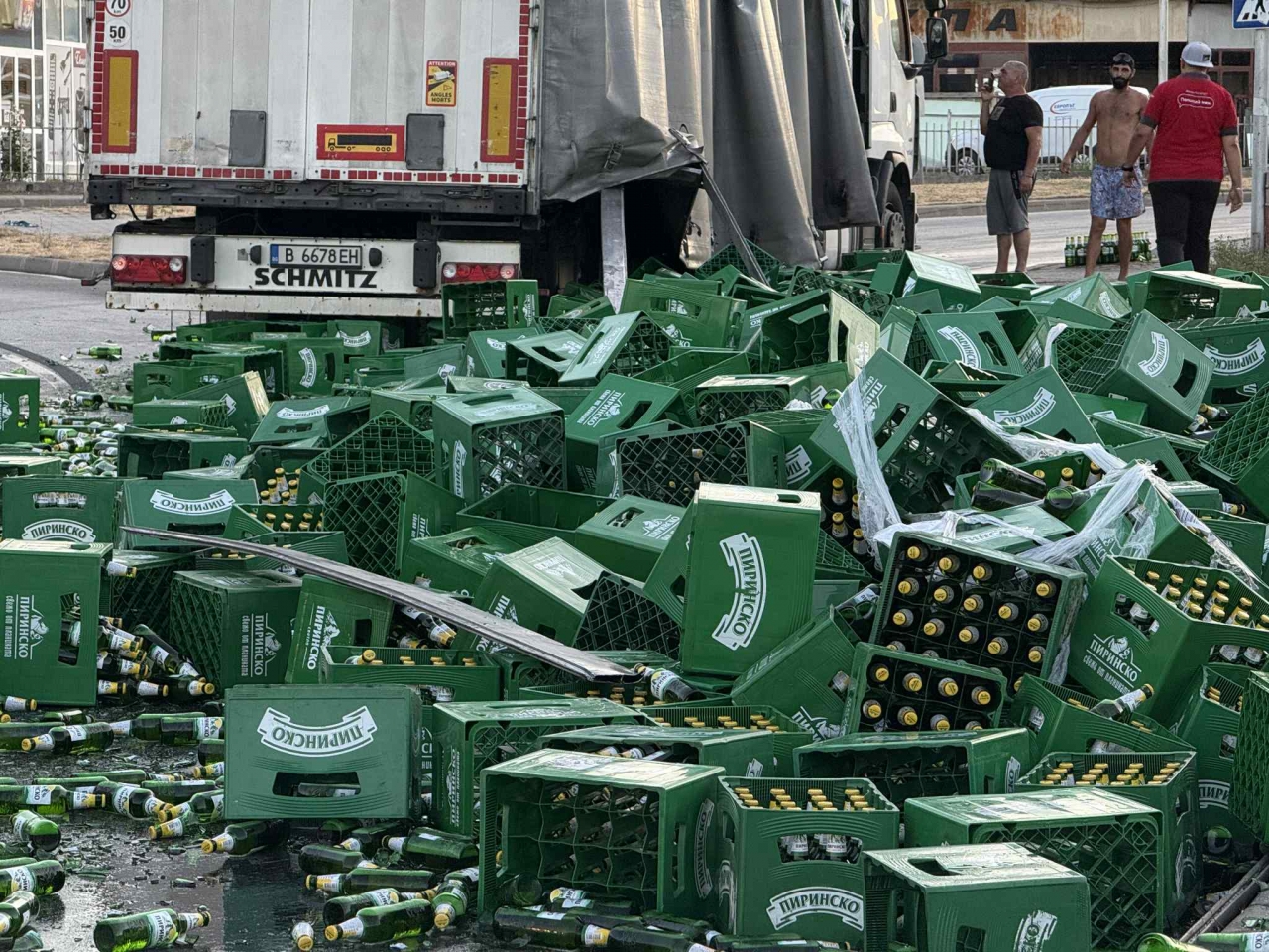 На място са изпратени и екипи на транспортната фирма, които веднага са започнали разчистване на разпиления товар и счупените стъкла. За щастие, при инцидента няма пострадали хора, а пробите за употреба на алкохол на водача са отрицателни.