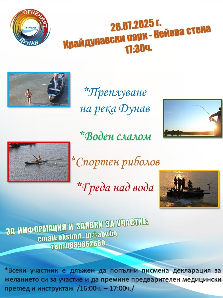 На 26 юли 2025 г. Крайдунавският парк в град Тутракан ще се превърне в сцена на вълнуващи спортни приключения и летни забавления с традиционното събитие "🔥 Огненият Дунав – Тутракан 2025 🔥".