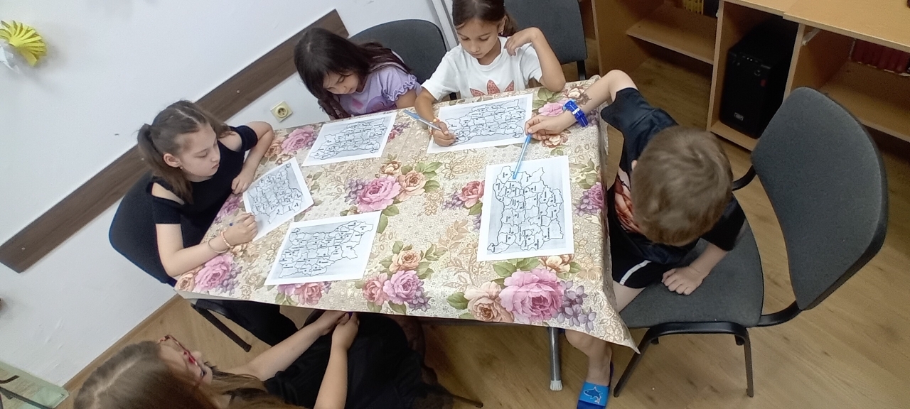 Днешната среща съчета полезното с приятното – децата начертаха на картата на България своя мечтан туристически маршрут, обмениха впечатления от вече посетени места и се запознаха с интересни факти за природните и културни забележителности в страната и по света. Всичко това бе подпомогнато от богато подбраните книги от фонда на библиотеката.
