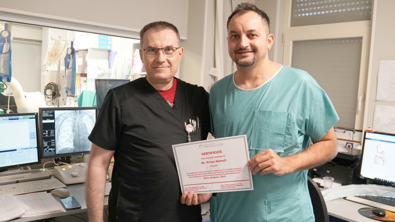 Първият участник в програмата е д-р Артан Ахмети, интервенционален кардиолог от Университетската клиника по кардиология в Прищина, Косово. Той има засилен интерес към двата диагностични метода, които в МЕДИКА КОР са стандарт.