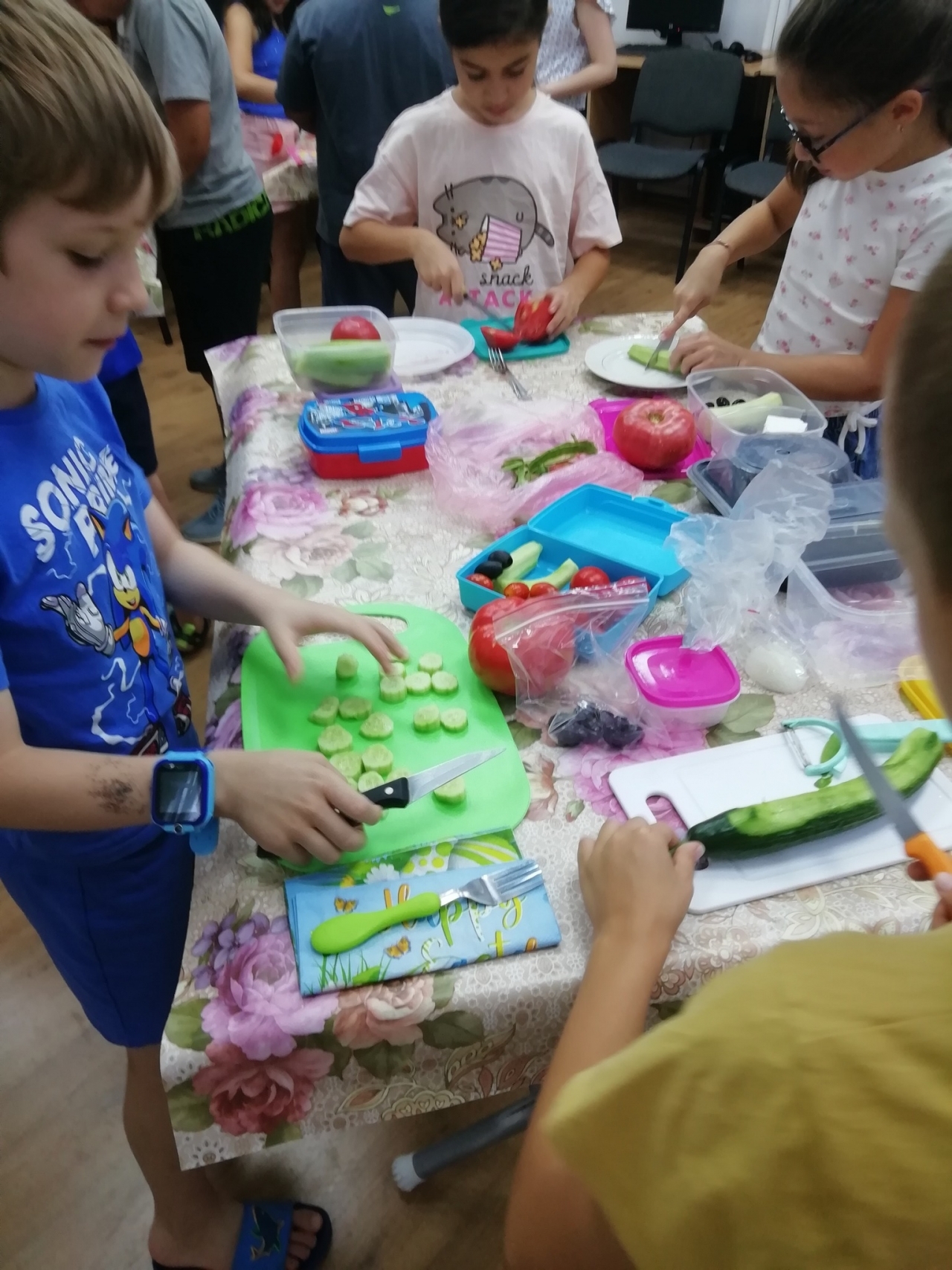 Малките участници се включиха с ентусиазъм в кулинарното предизвикателство и сътвориха собствени варианти на салатата – с лук или без, със зехтин или олио, с натрошено или настъргано сирене, с маслини, подредени като цветя и дори с "тайни" съставки по детски вкус.