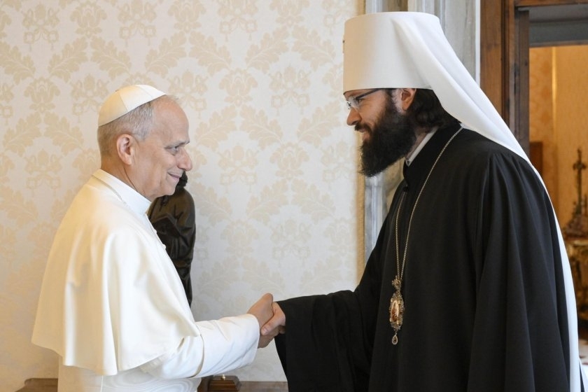 Лъв XIV, който призова Кремъл да направи "жест" в полза на мира в Украйна, прие митрополит Антоний Волоколамски, своеобразен "министър на външните работи" на руския православен патриарх Кирил, който подкрепя политиката на Кремъл.