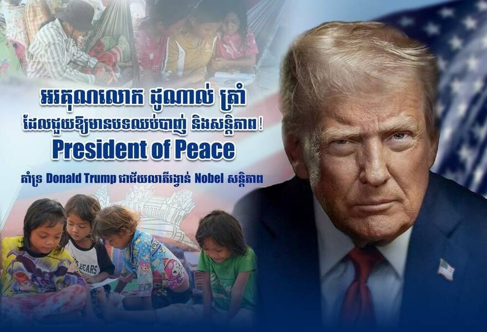 Портрети на Тръмп, придружени от изображения на американското знаме, камбоджанското знаме и снимки на камбоджански бежанци, включително деца, се разпространяват повсеместно, заедно със съобщения, призоваващи за номинацията му за Нобелова награда за мир.
