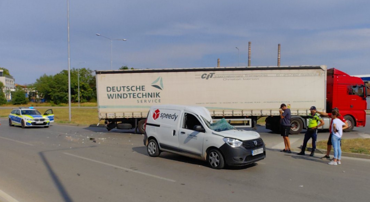 По първоначална информация, тирът се е движел в посока към града, когато е предприел ляв завой на обръщалото. В този момент в задната дясна част на ремаркето се е врязал лек автомобил "Дачия".