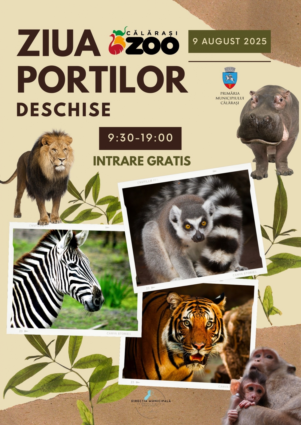 Утре, 9 август, Зоопаркът в Кълъраш ще посреща посетителите си свободно и без входна такса по повод Международния ден на зоопарковете. Денят ще бъде отбелязан със специална инициатива "Ziua porților deschise" (Ден на отворените врати), организирана от Примăрия Кълъраш и Дирекцията на зоопарка.