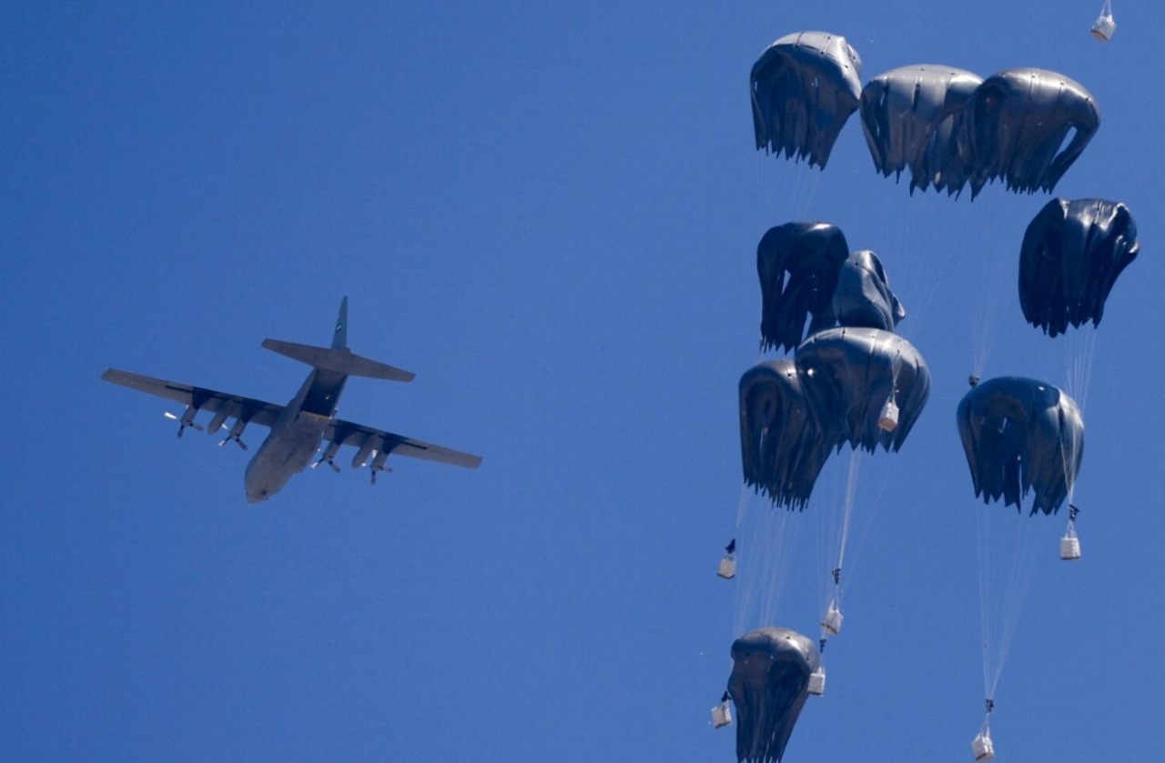 Според израелските военни днес самолети от Германия, Нидерландия, Гърция, Италия, ОАЕ и Йордания са пуснали 106 контейнера помощ над Газа.