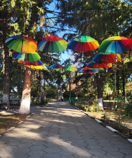 Алеята се намира пред сградата на кметството и бързо привлича вниманието на местните жители и посетители. Ярките цветове на чадърите, окачени над пешеходната пътека, създават усещане за празничност и предлагат приятна сянка в летните дни.