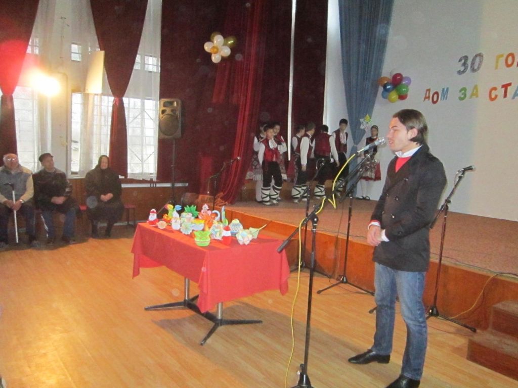 Жени ГЕРБ, които проведоха неотдавна благотворителна инициатива с цел набиране на средства за този повод, осигуриха специален музикален поздрав – представление от детския състав на ансамбъл "Добруджа" с художествен ръководител Димитър Джамбазов. Възрастните хора не скриха радостта и въодушевлението си от народните песни и танци, които младите изпълнители им представиха. Освен това представителките на ЖГЕРБ-Силистра поднесоха пити за почерпка на всички домуващи.