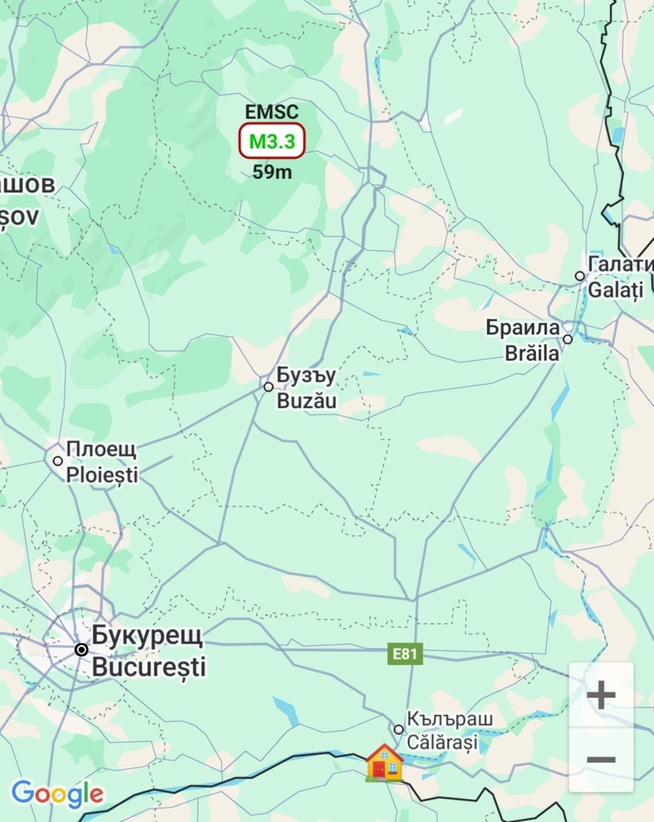 Земетресение с магнитуд 3,3 по Рихтер в Румъния, усетено и в Северна България