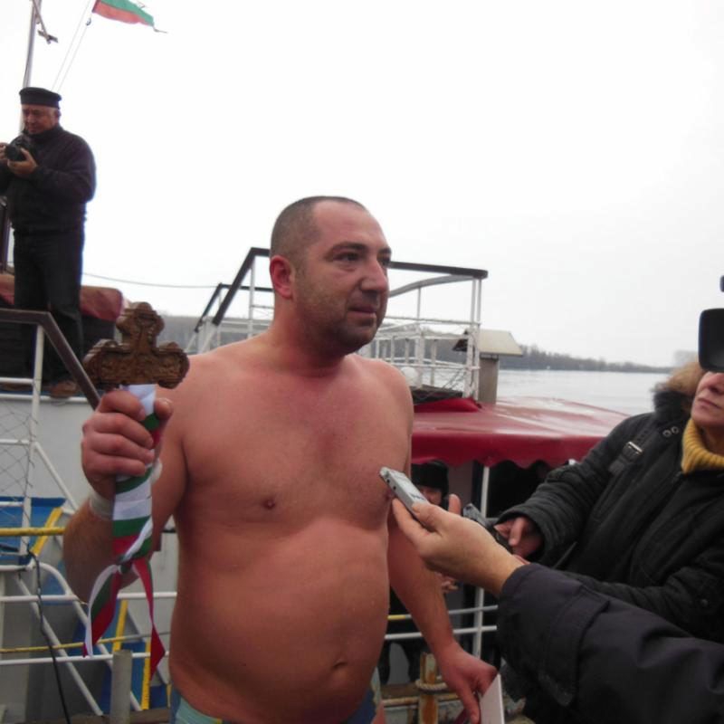 35-годишният Светлин Иванов е носителят на здраве и късмет за силистренци през тази година. Той успя да се пребори не само с конкурентите си, но и с ледените води на Дунав и доплува пръв до Богоявленския кръст.