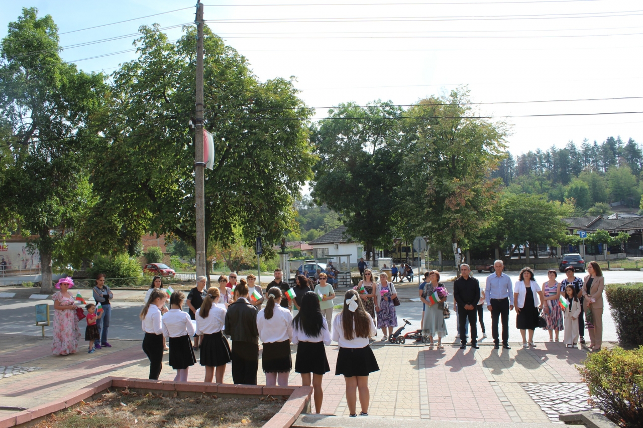 Ученици, представители на културни институции и жители на общината се включиха в честването, което завърши с рецитал и изпълнения на патриотични песни.