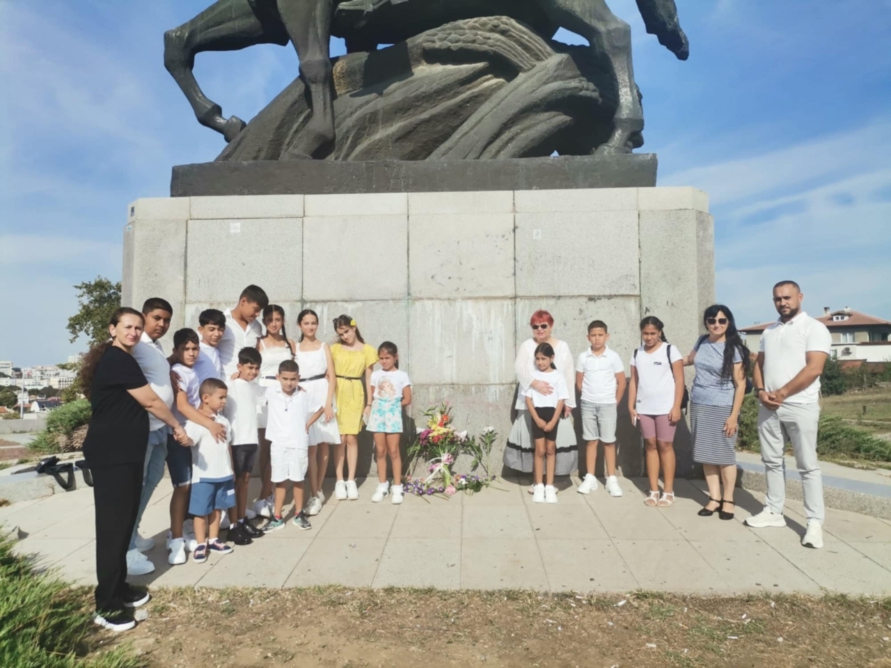 Читалищната група поднесе цветя пред паметника на хан Аспарух в Добрич